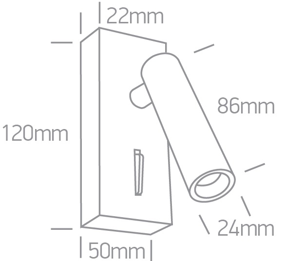 Luminaire de chevet réglable à LED COB 3W, idéal pour les chambres d'hôtel, IP20. Complet avec driver. Conforme à la norme EN60598-1 et à toute autre norme spécifique.