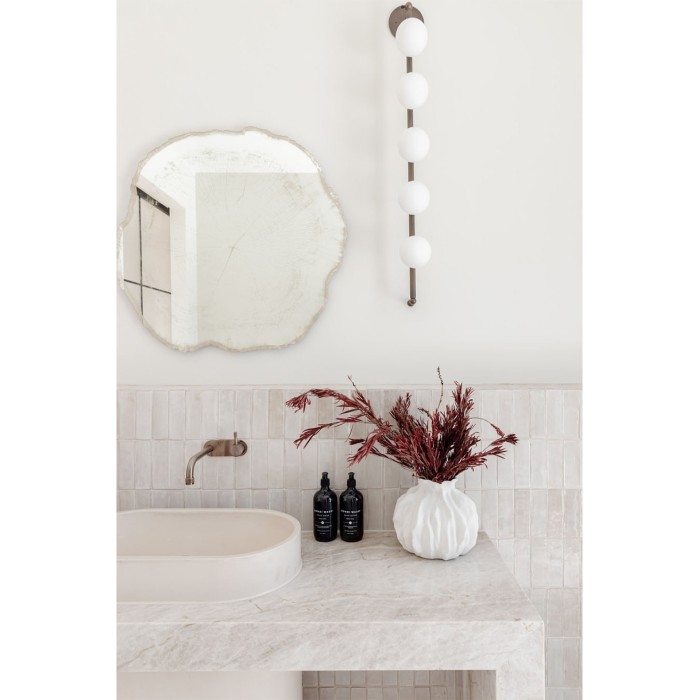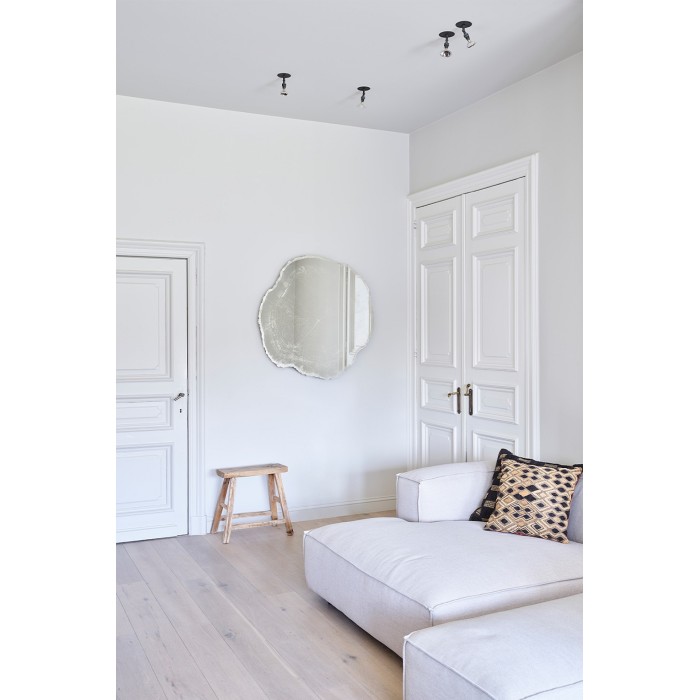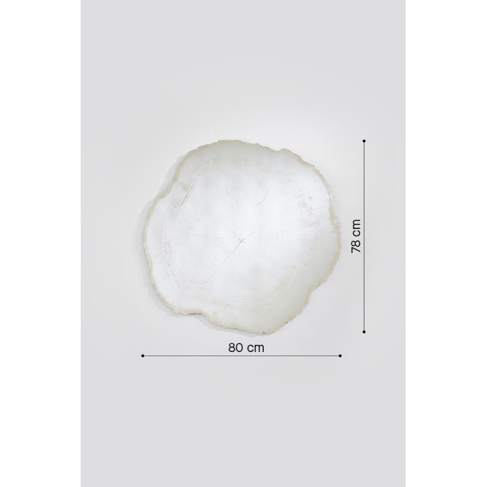 Cette forme et impression naturelles donnent à ce miroir une apparence chaleureuse et conviviale, interprété ici dans une couleur blanche givrée. Sur le mur, ce miroir iconique reflète l’environnement avec douceur, entrelacé dans le dessin des cernes de croissance de l’arbre. En fonction de la réflexion, les couleurs du miroir changeront et s’adapteront.